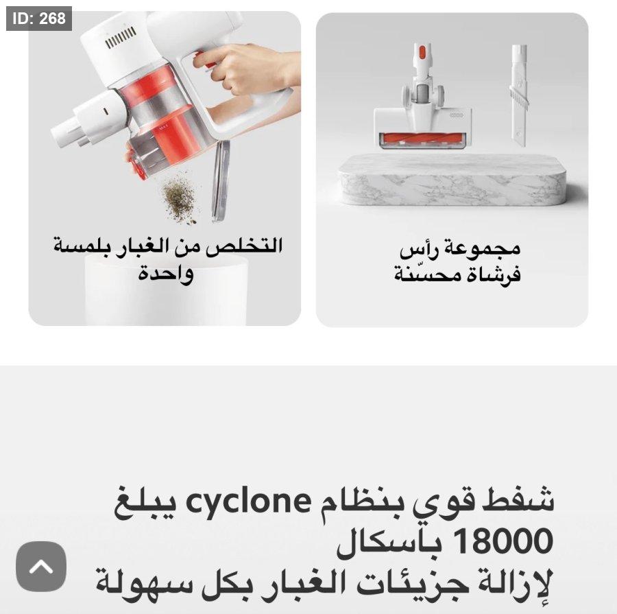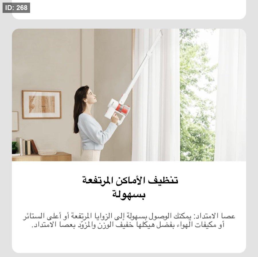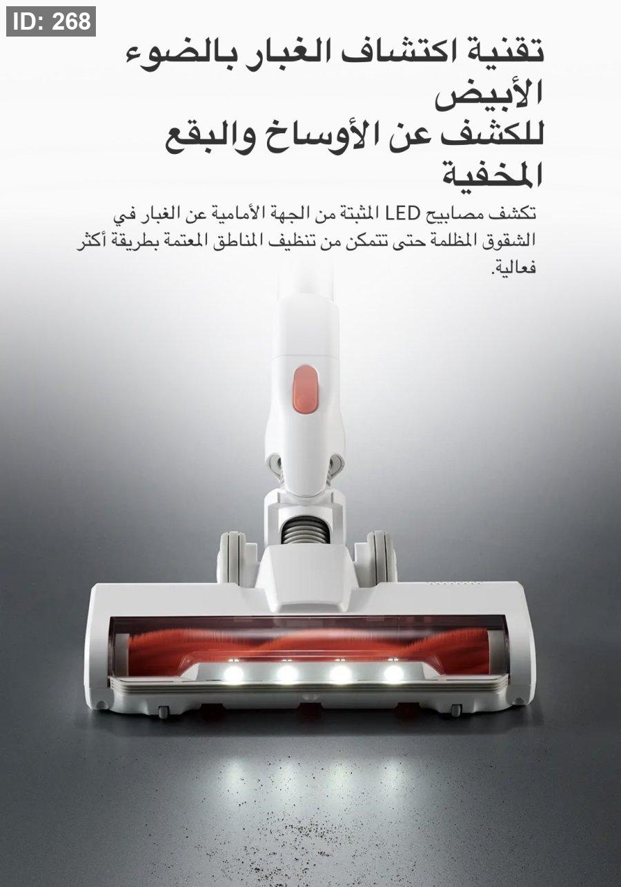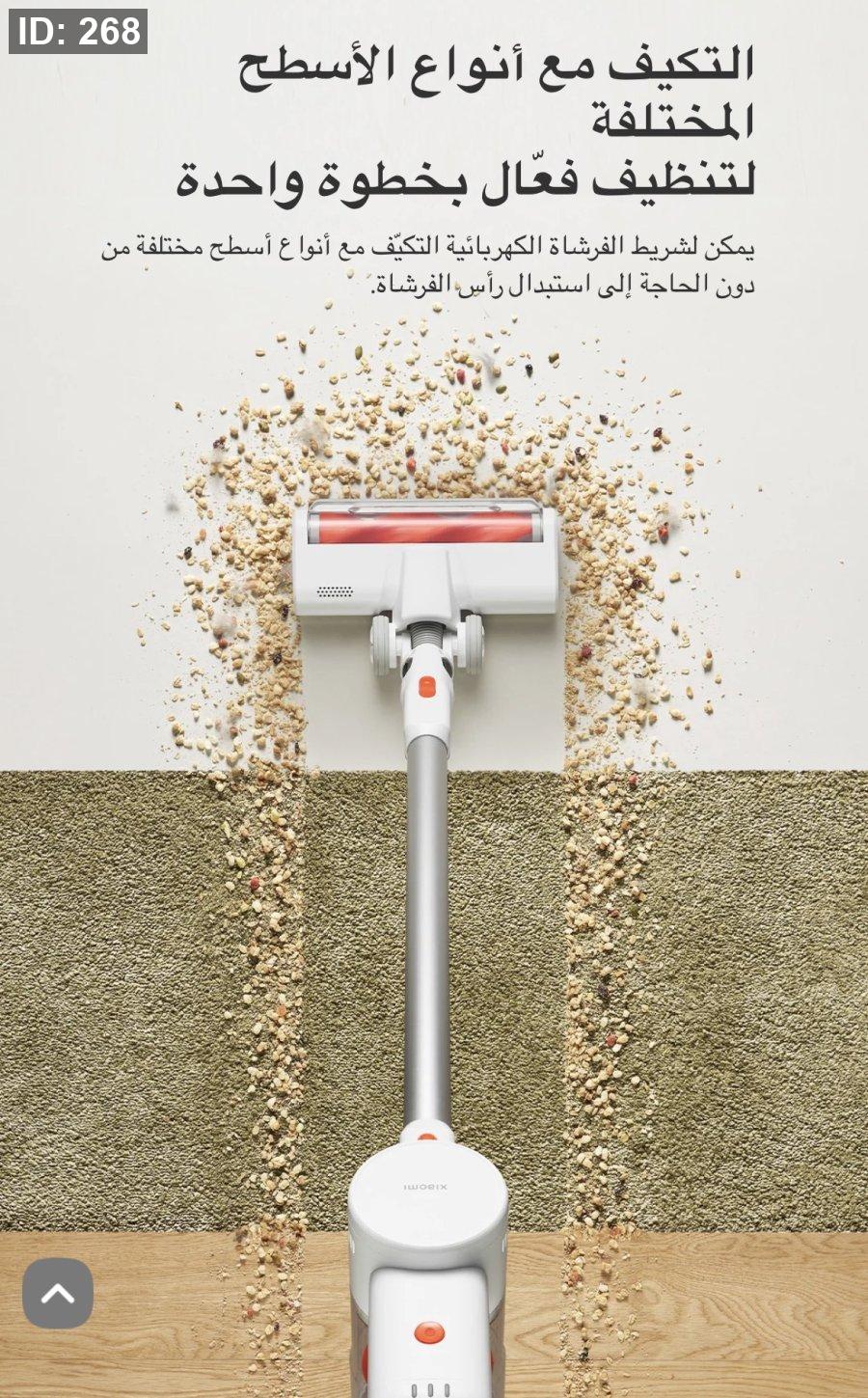 قوة شفط قوية: تتميز المكنسة بقدرة شفط تصل إلى 18,000 باسكال، مما يضمن إزالة الأوساخ والشعر والعوالق بفعالية من مختلف الأسطح.