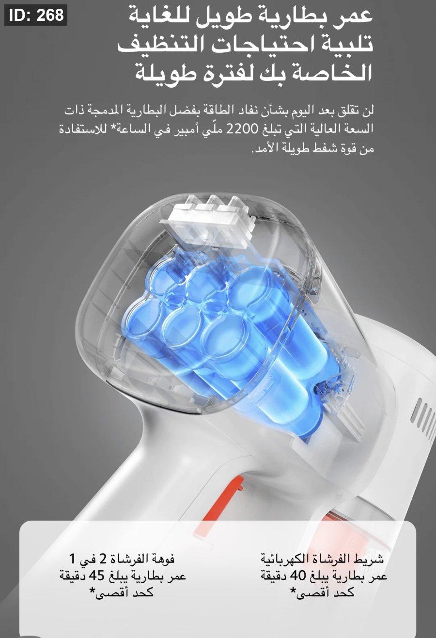 بطارية تدوم طويلاً: توفر البطارية وقت تشغيل يصل إلى 45 دقيقة، مما يسمح بتنظيف مساحات واسعة بشكل مستمر.