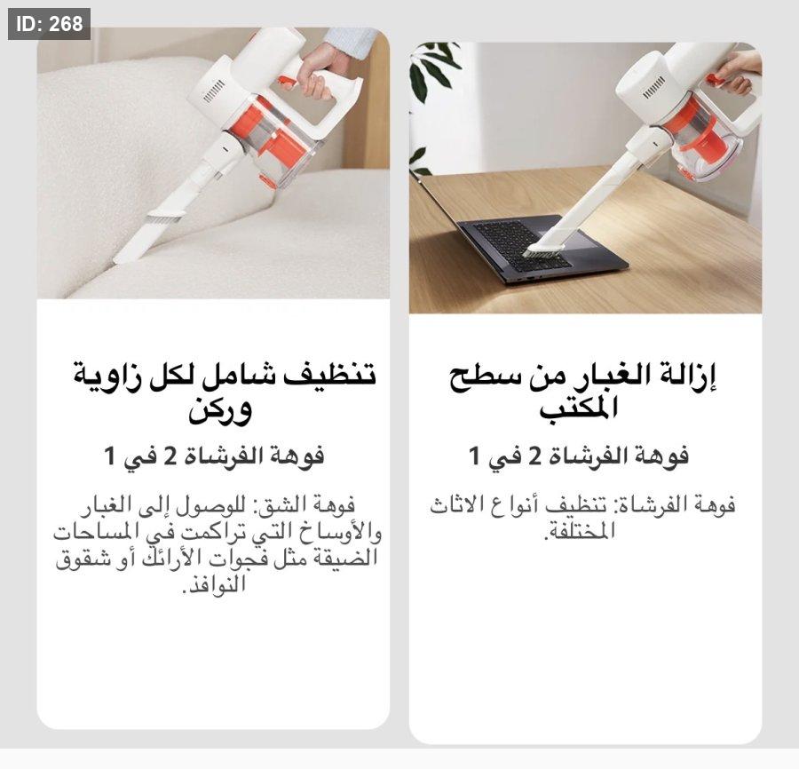تصميم عملي ومتعدد الاستخدامات: تأتي المكنسة مع مجموعة متنوعة من الأدوات، بما في ذلك فرشاة كهربائية، قضيب تمديد، وفتحة فرشاة 2 في 1، مما يجعلها مثالية لتنظيف مختلف الأسطح والزوايا.