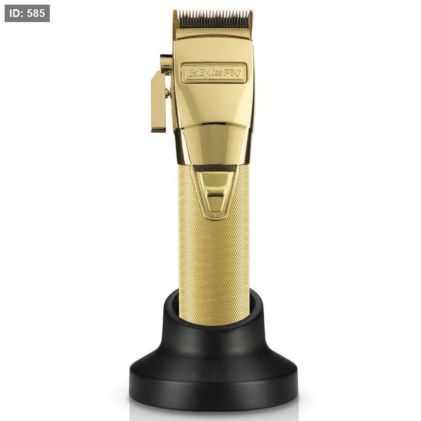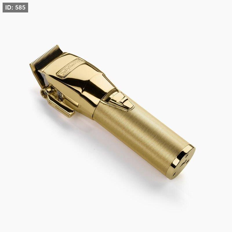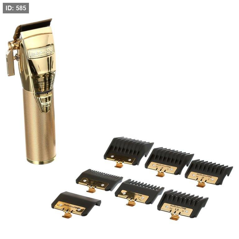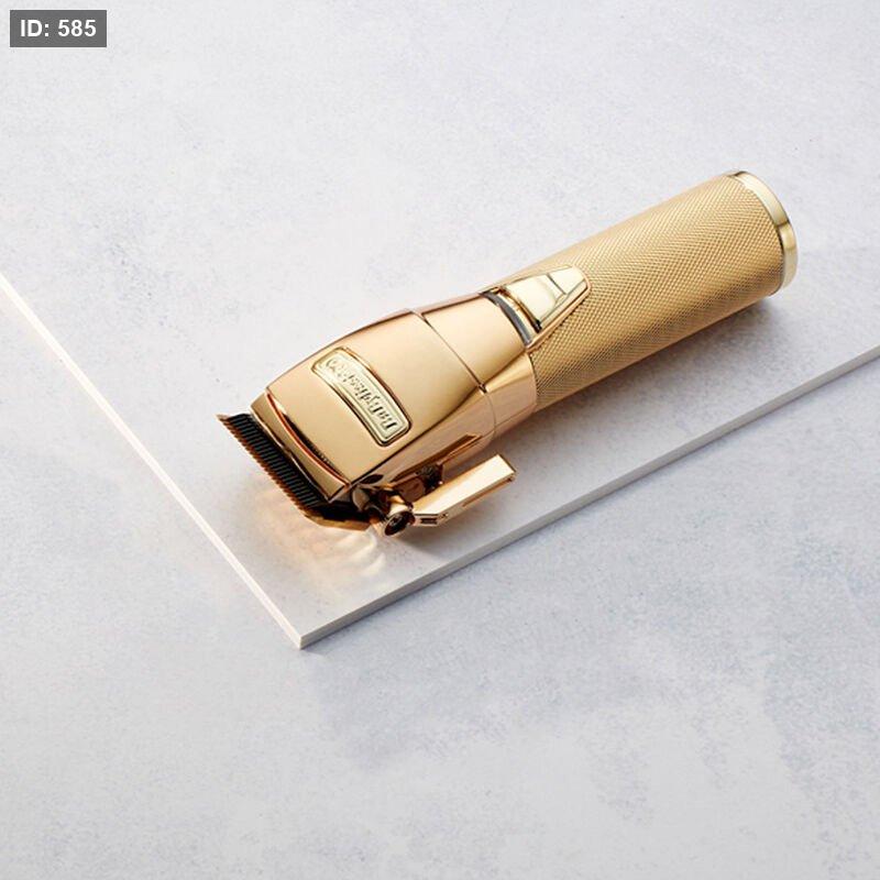 ماكينة قص الشعر وحلاقة احترافية باللون الذهبي.