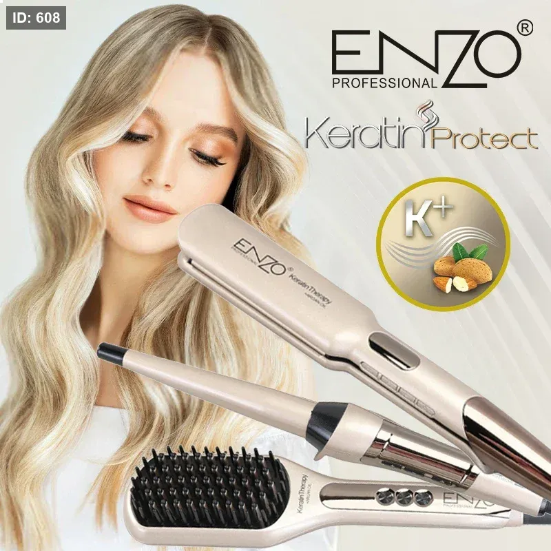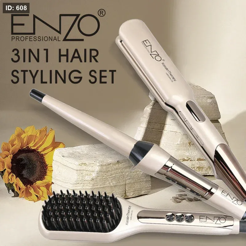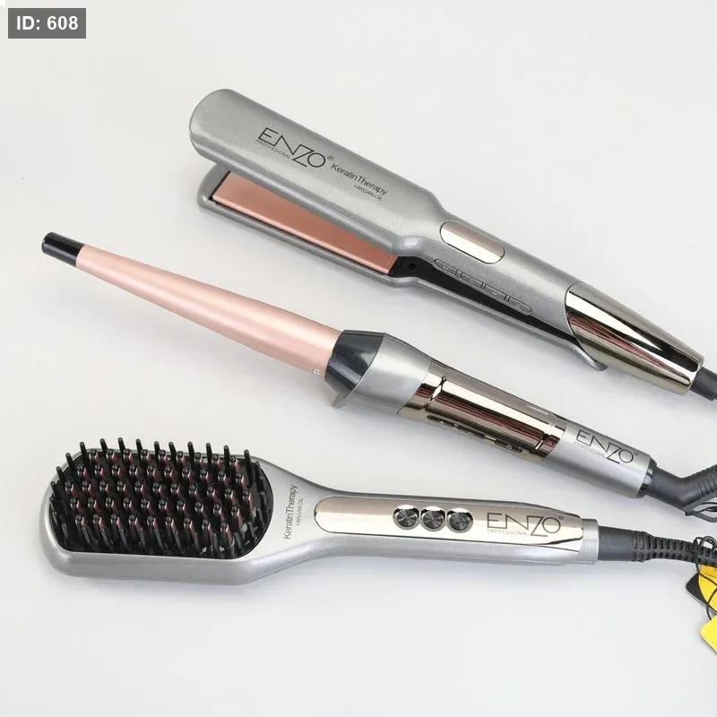النوع: طقم تصفيف الشعر 3 في 1 – مكواة + فرشاة حرارية + مجعد.